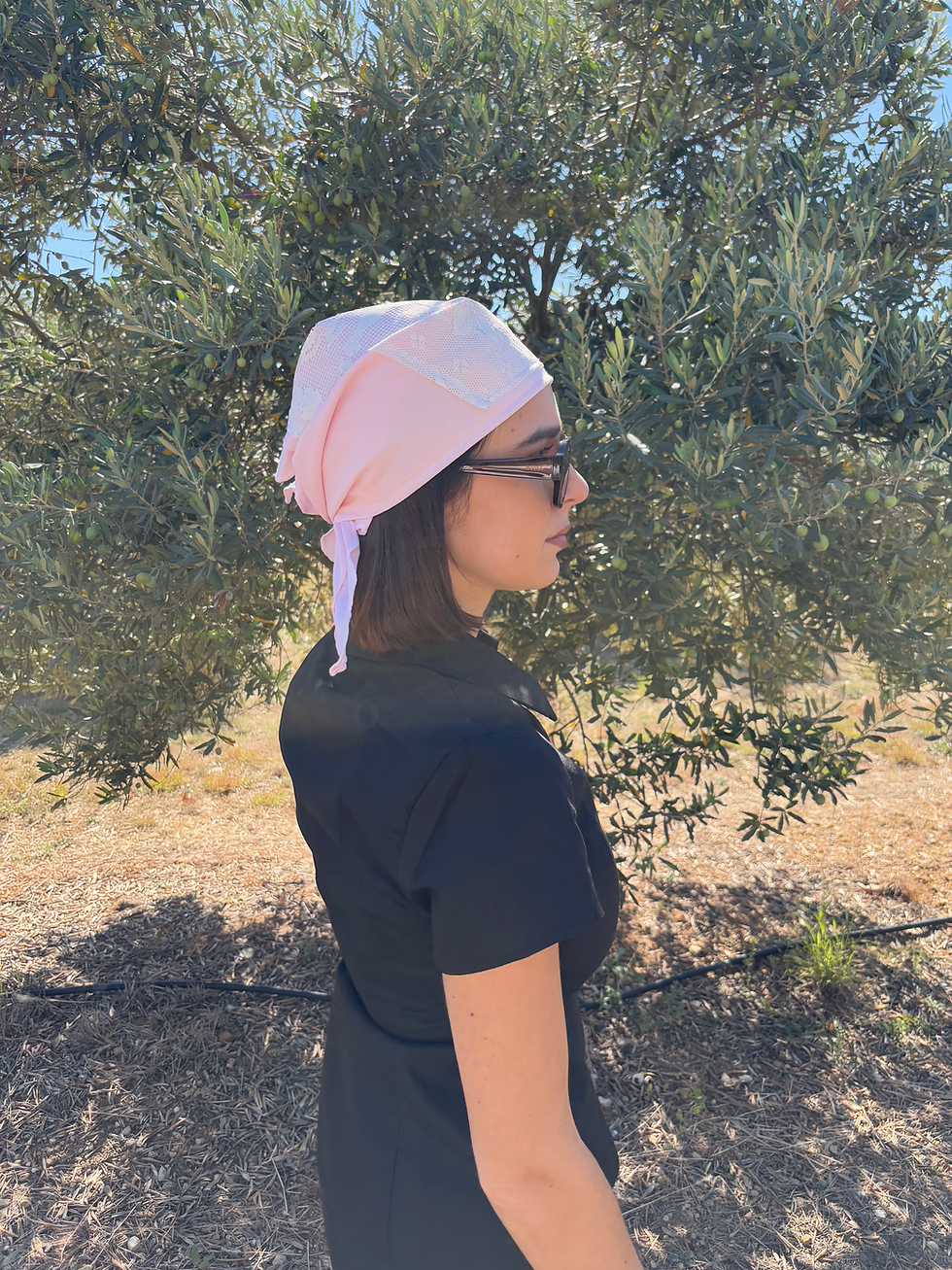 Bandana Pièce Unique Dentelle Rose & Blanc - Cousu main & Fabriqué en France 🪡